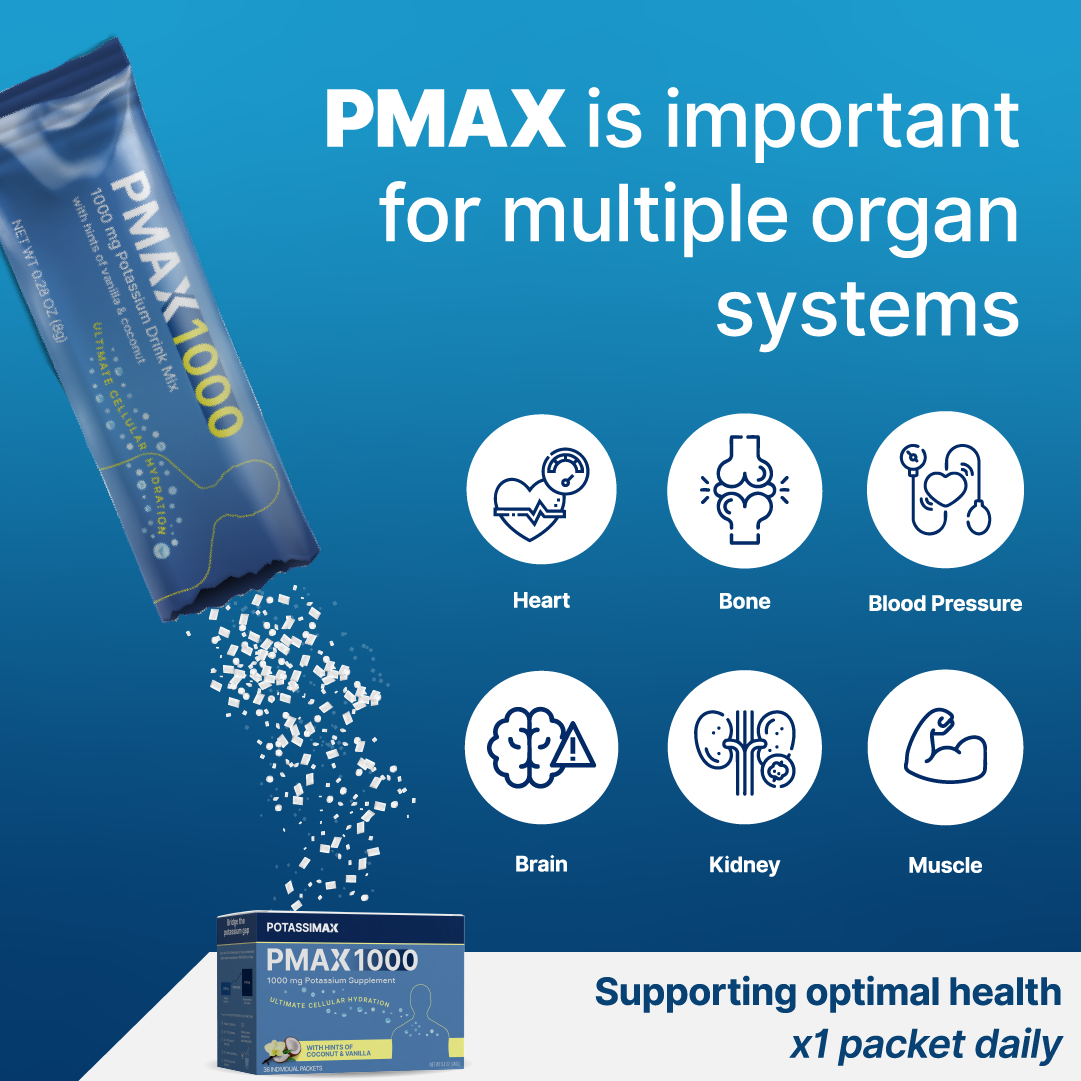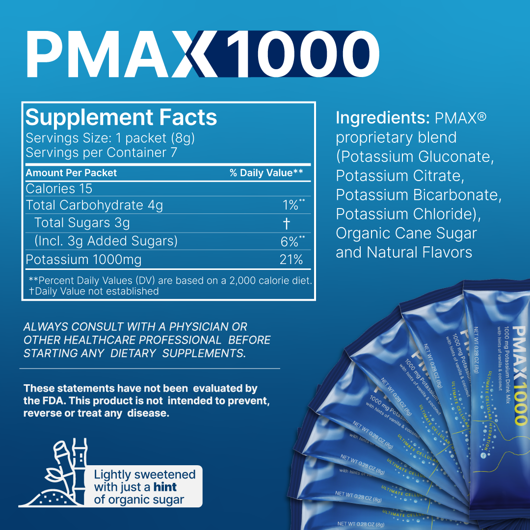 7 individually-packaged servings of PMAX1000, helping you reach the levels of potassium intake that are associated with the BEST health outcomes.