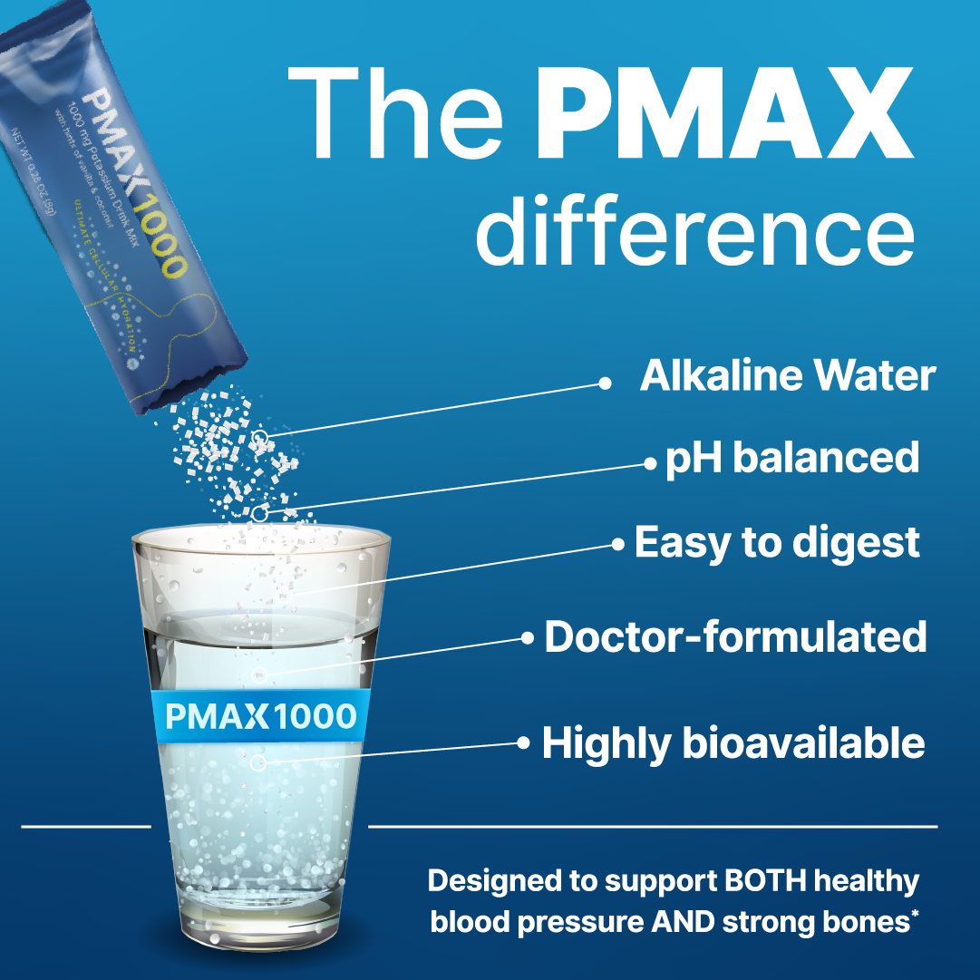 PMAX contains four types of potassium that have been extensively studied for supporting healthy blood pressure, kidneys, and bones.