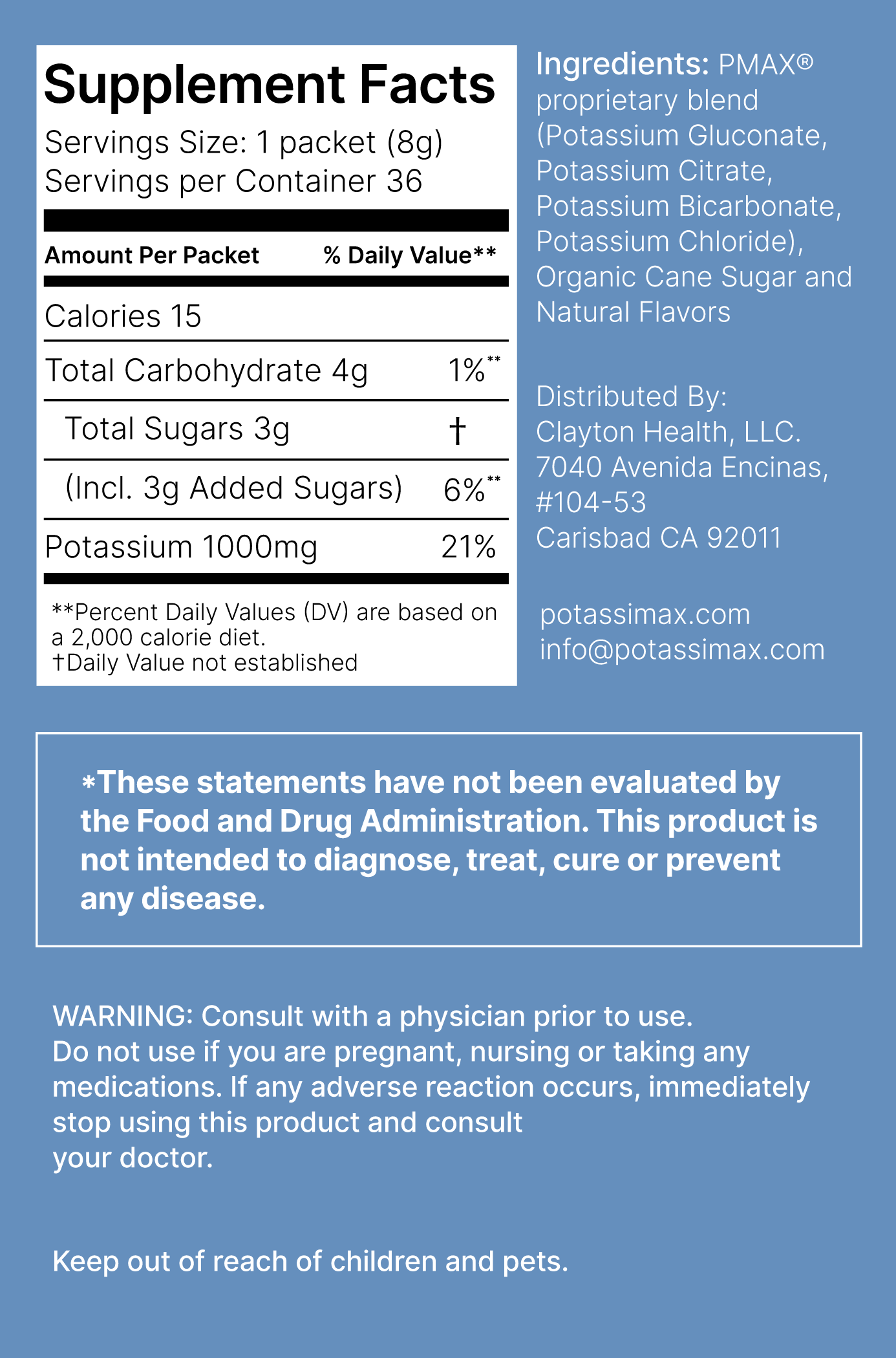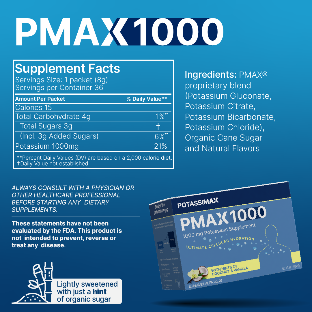 The potassium in PMAX is formulated to be absorbed just like the potassium from foods.