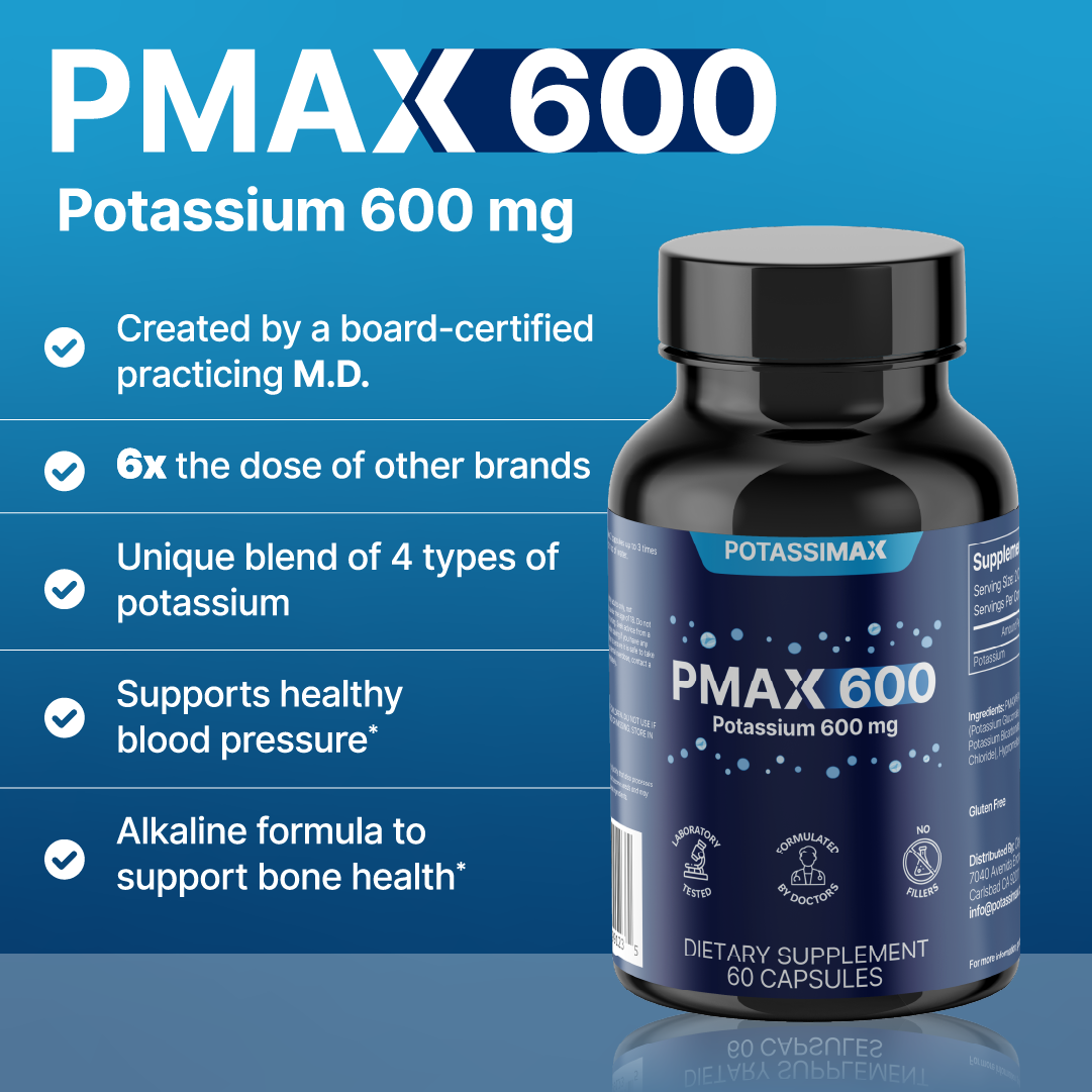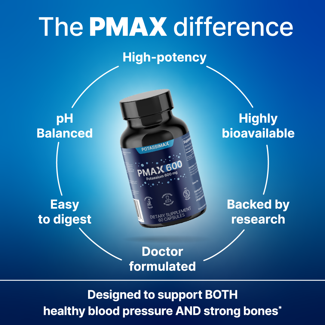 PMAX contains four types of potassium that have been extensively studied for supporting healthy blood pressure, kidneys, and bones.