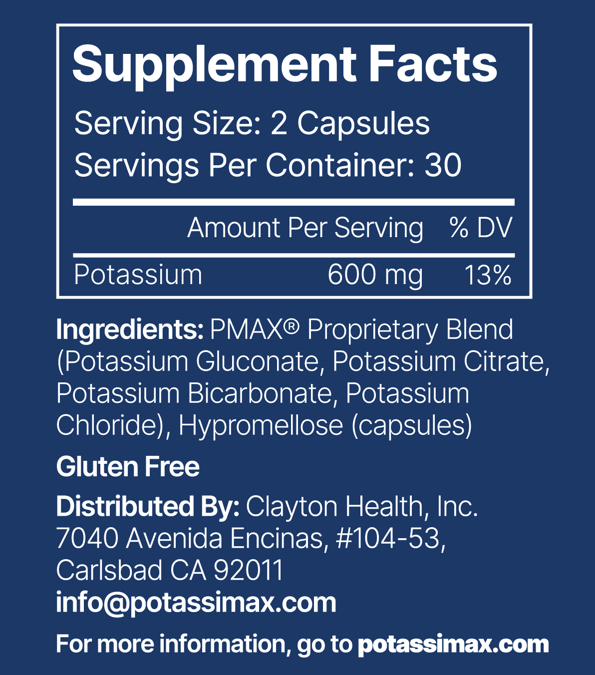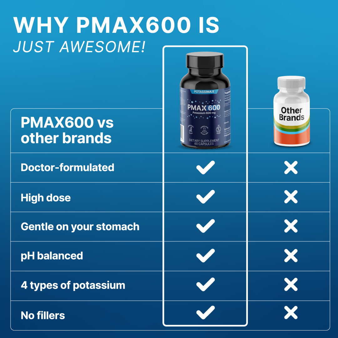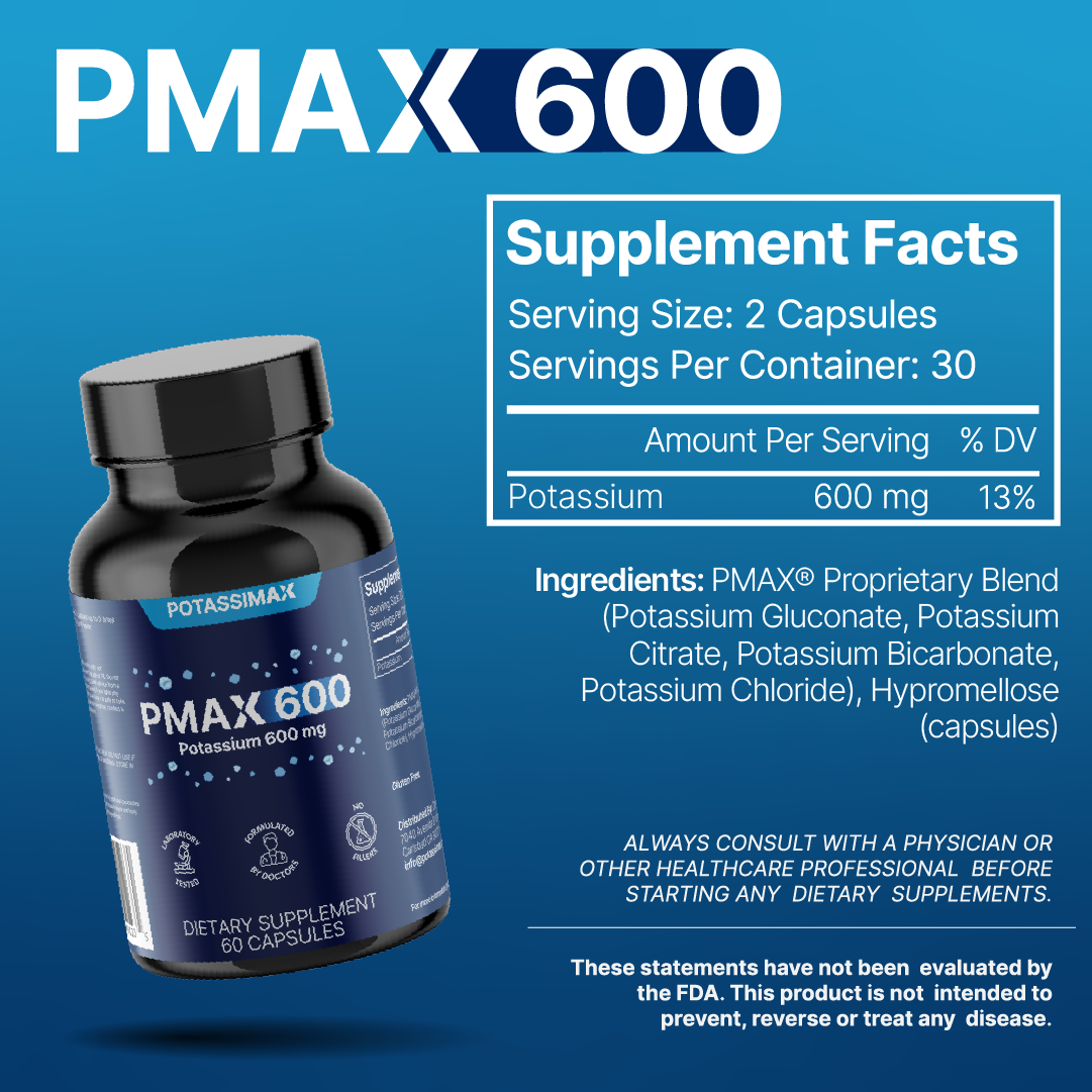 The potassium in PMAX is formulated to be absorbed just like the potassium from foods.